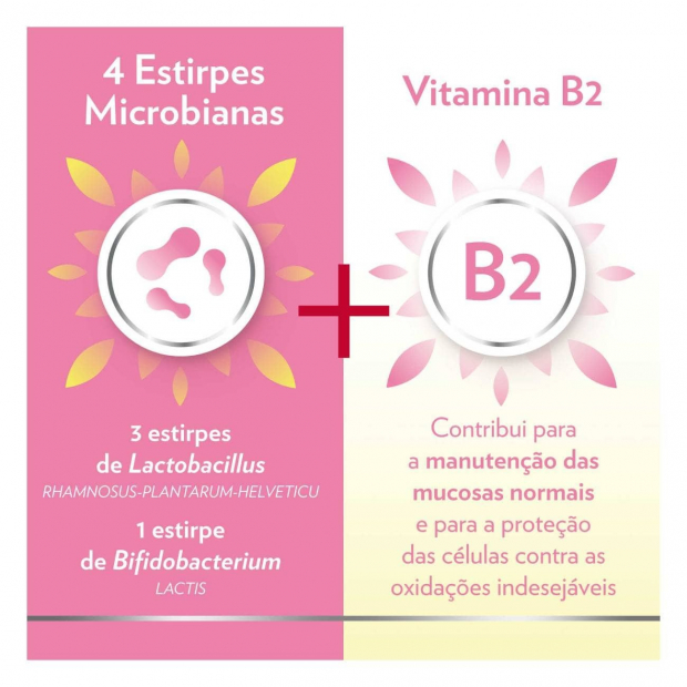 Com uma fórmula avançada, este suplemento contém 4 estirpes probióticas e Vitamina B2, que ajudam a restabelecer a flora vaginal, proteger as mucosas e prevenir desconfortos íntimos.