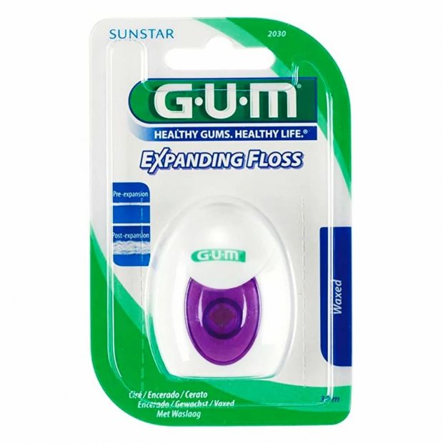 Gum Expanding Floss Fio Dentário é fino e fácil de inserir entre os dentes. Uma vez colocado, este fio expande-se significativamente. Isto permite que se encaixe facilmente em todos os espaços entre os dentes, alcançando uma maior superfície dentária e limpando eficazmente abaixo da linha da gengiva.