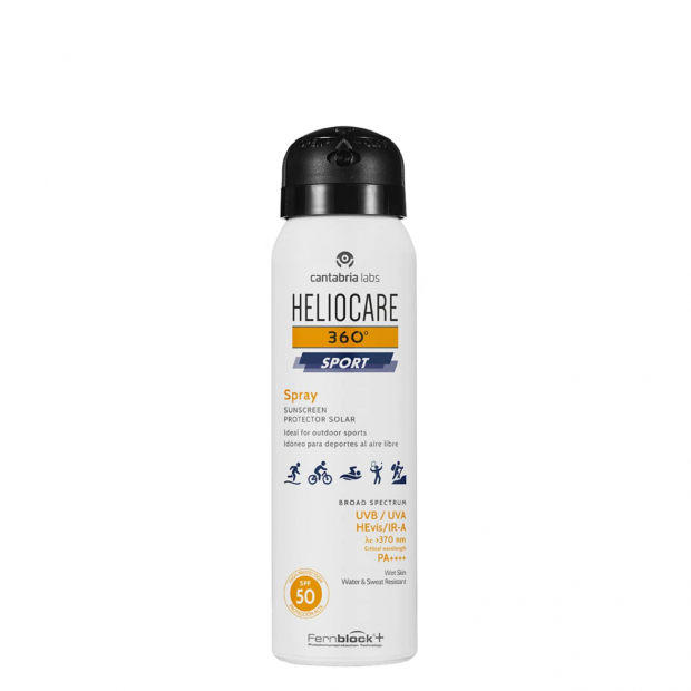 Heliocare 360º Sport SPF50 Spray Protetor tem uma textura ligeira e um efeito refrescante, com uma fórmula que associa: