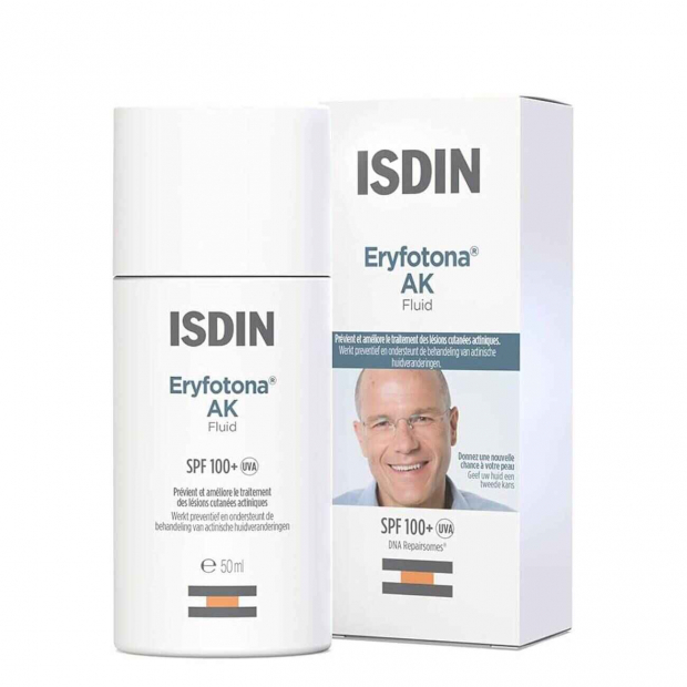 Especilamente dedenvolvido para peles com quaratose actínica ou outros tipos de cancro, ISDIN Eryfotona AK-NMSC Fluido SPF100+ protege eficazmente dos raios solares.