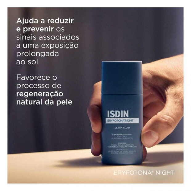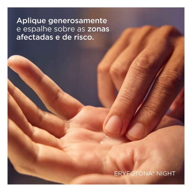 Agita antes de usar. Aplica Isdin Eryfotona Night Repair Sérum à noite, nas zonas afetadas, como rosto, pescoço, decote, couro cabeludo e mãos.