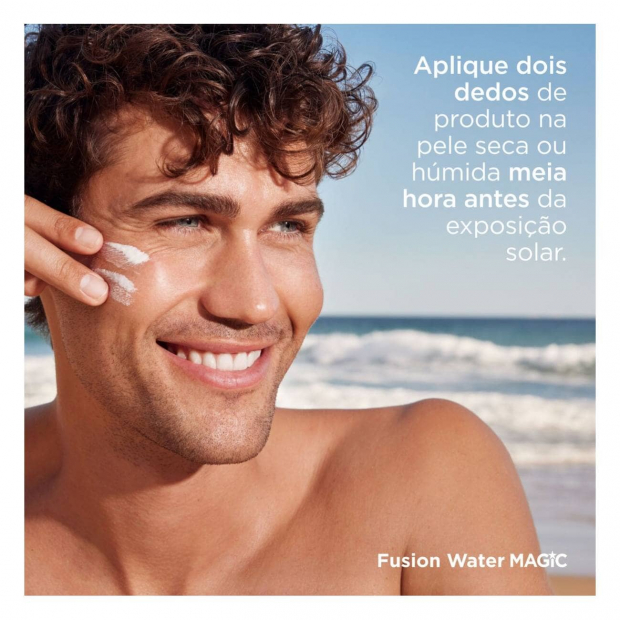 Aplica Isdin Fusion Water Magic sobre a pele seca ou húmida. A quantidade adequada para a zona do rosto são duas linhas de produto estendidas em dois dedos. Espalha de igual forma em todo o rosto, pescoço, nuca e orelhas. Reaplica frequentemente no caso de exposição solar prolongada, banhos ou exercício fisico.