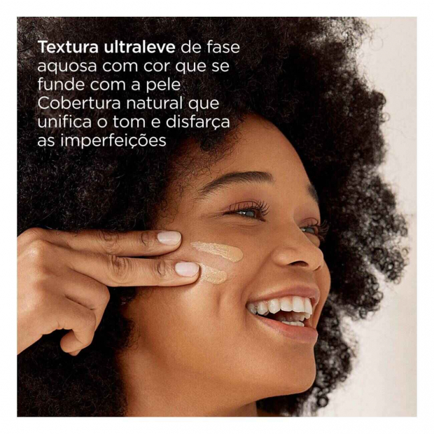 Os testes clínicos comprovam que: 88% refere que tem acabamento natural, 81% que diminui as imperfeições e 80% que é ideal como base de maquilhagem.