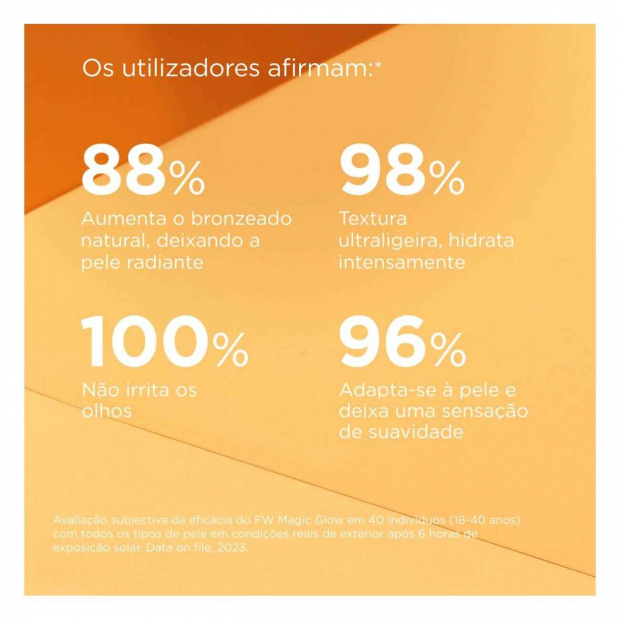 Aplica Isdin Fusion Water Magic Glow sobre a pele seca ou húmida. A quantidade adequada para a zona do rosto são duas linhas de produto estendidas em dois dedos. Espalha de igual forma em todo o rosto, pescoço, nuca e orelhas. Reaplica frequentemente no caso de exposição solar prolongada, banhos ou exercício fisico.