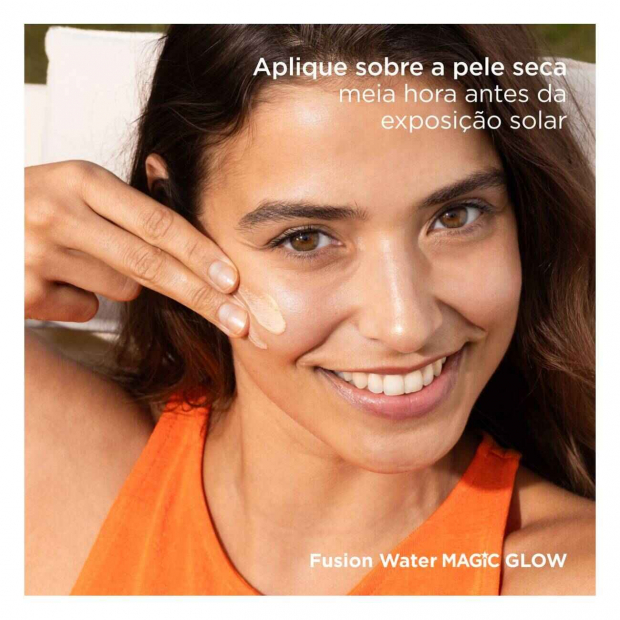 Isdin Fotoprotector Fusion Water Magic Glow tem uma textura ultraligeira de absorção imediata, que não deixa resíduo oleoso.