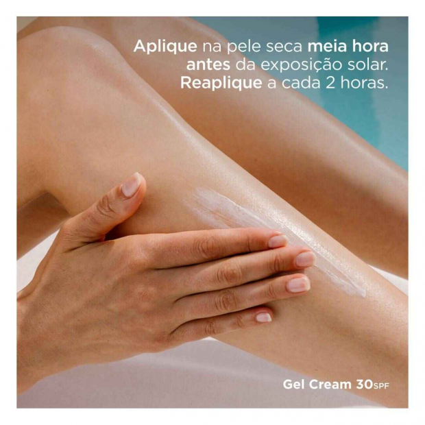 Aplica Isdin Fotoprotetor Gel Creme SPF30 na pele seca, 30 minutos antes da exposição solar. Reaplica a cada 2 horas ou após o banho.