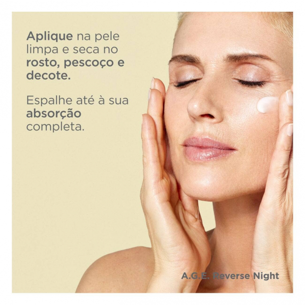 Este creme reparador atua durante a noite, promovendo a renovação celular e combatendo os sinais visíveis de envelhecimento.