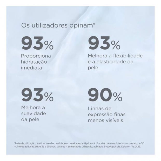 - Duplo Ácido Hialurónico, de médio e baixo peso molecular, que atua em diferentes camadas da pele, proporcionando hidratação intensa e preenchimento
