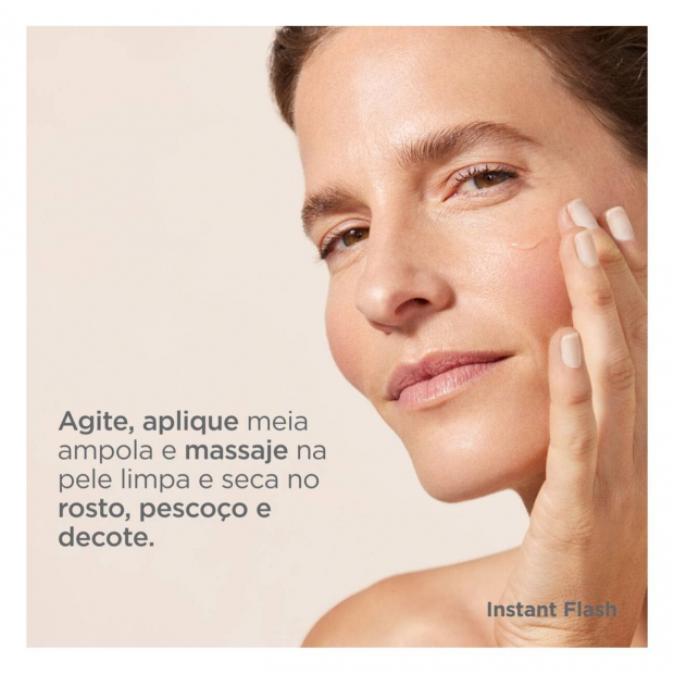 Aplica meia ampola de Isdin Isdinceutics Instant Flash, de manhã, na pele do rosto e pescoço, perfeitamente limpa e seca.