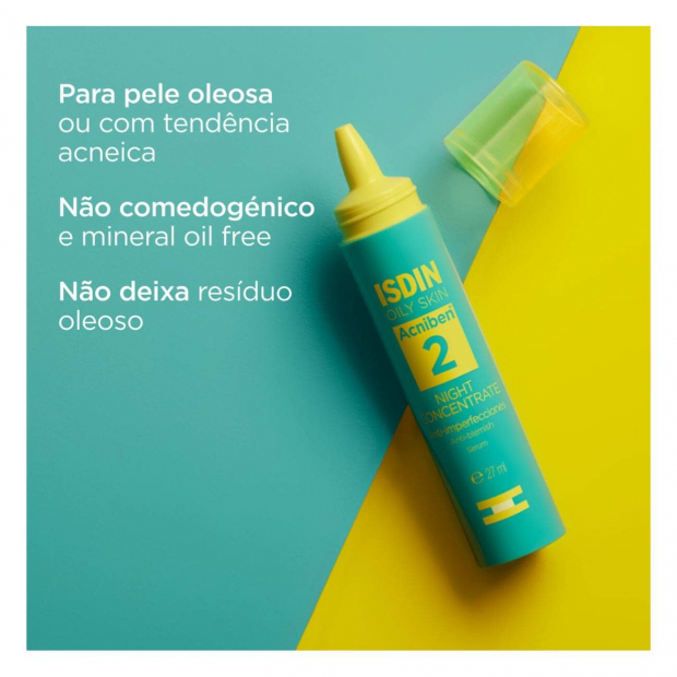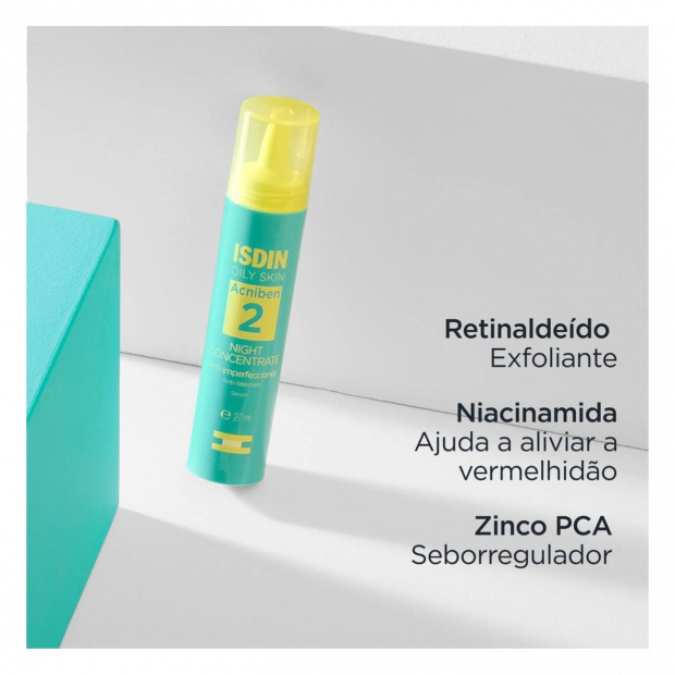 Isdin Acniben Sérum Night Concentrate tem uma fórmula completa de elevada tolerância.