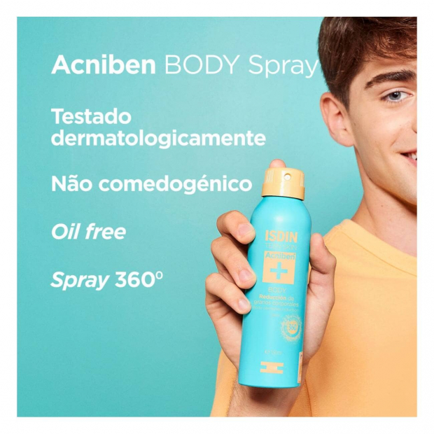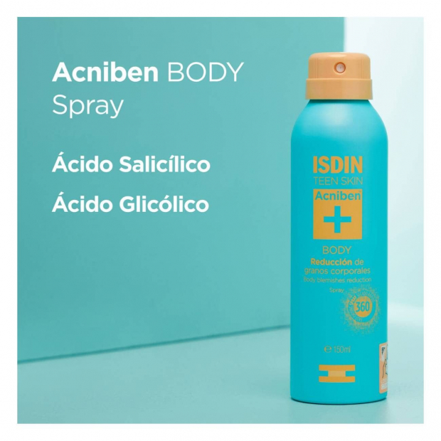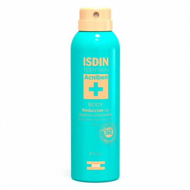 Isdin Teen Skin Acniben Body Spray é um spray 360º para combater o acne corporal.