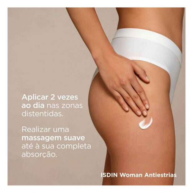 Isdin Woman Creme Anti-Estrias é um creme, que hidrata, dá firmeza à pele, enquanto previne o aparecimento de estrias.