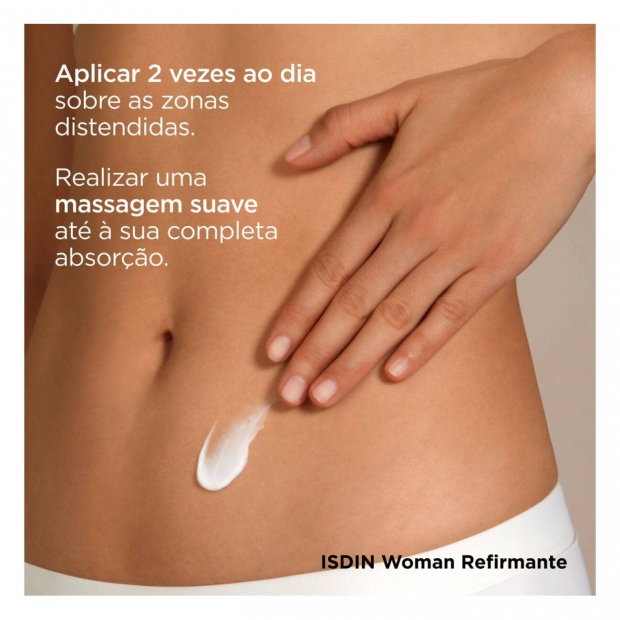 Aplica Isdin Woman Creme Refirmante, 2 vezes por dia, na pele do corpo, perfeitamente limpa e seca, com uma massagem suave até ser absorvido. Insistir nas zonas afetadas.