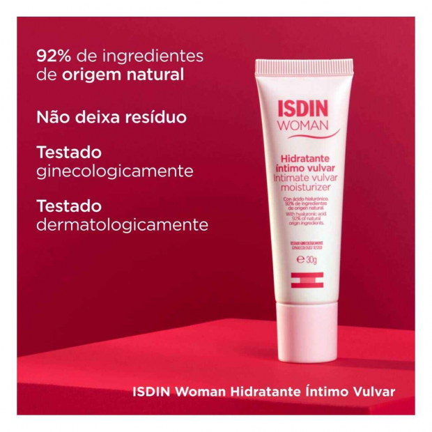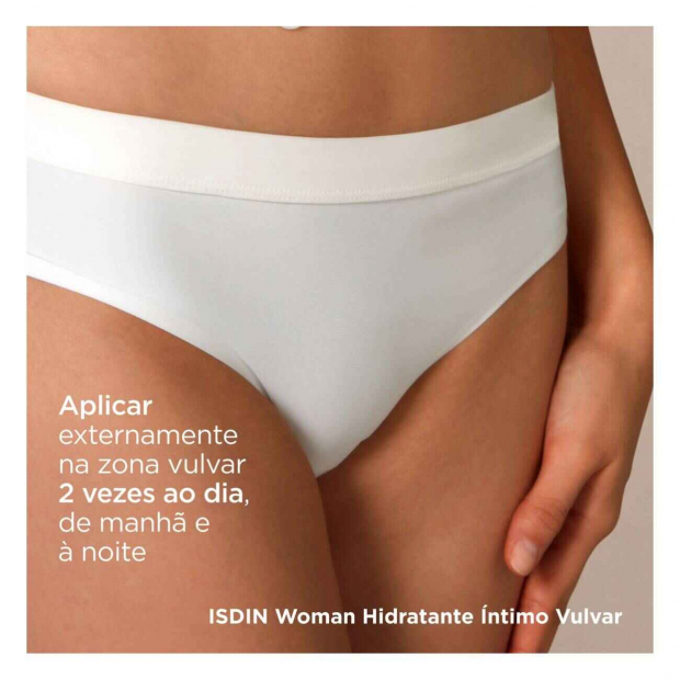 Isdin Woman Hidratante Vulvar respeita o equilíbrio cutâneo natural.
