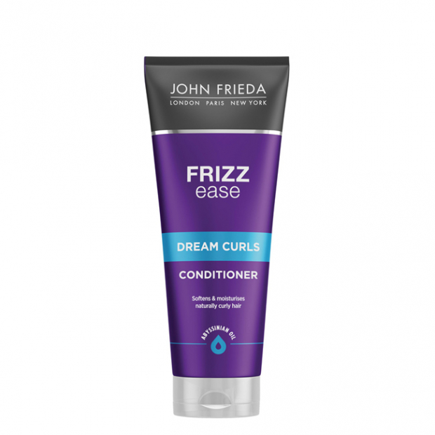 John Frieda Frizz-Ease Dream Curls Condicionador tem uma textura cremosa, combinado com óleo de jojoba e silicone anti-frisado para uma ação nutritiva, suavizante e hidratante.