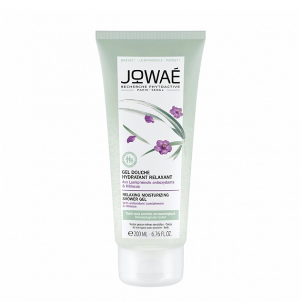 Jowaé Gel Duche Hidratante Relaxante tem uma base lavante delicada (vegan), com lumifenóis e extrato de hibisco, para uma ação de limpeza, relaxante, hidratante, reparadora e suavizante.