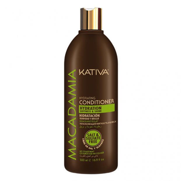 Kativa Macadamia Condicionador tem uma fórmula cruelty-free, com 91% de ingredientes de origem natural, com macadâmia rica em vitamina D e ómegas 3 e 6, para uma ação hidratante, reparadora e suavizante.