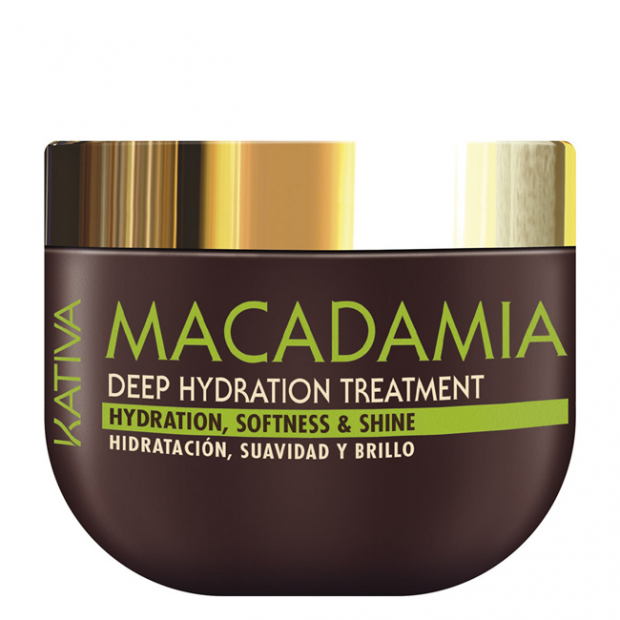 Kativa Macadamia Tratamento Hidratante Profundo tem uma fórmula cruelty-free, com 91% de ingredientes de origem natural, com macadâmia rica em vitamina D e ómegas 3 e 6, para uma ação hidratante, reparadora e suavizante.