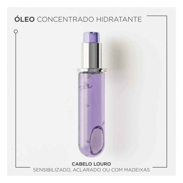 Óleo capilar nutritivo, que oferece hidratação, brilho e suavidade para cabelos loiros ou descolorados.
