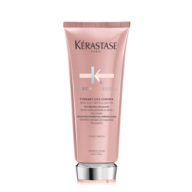 Kérastase Chroma Absolu Fondant Cica Chroma Condicionador tem uma fórmula em creme leve, com uma avançada combinação de ativos: