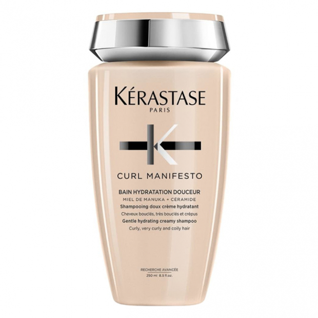 Kérastase Curl Manifesto Bain Hydratation Douceur tem uma fórmula cremosa, que combina mel de Manuka e ceramidas, para uma ação de limpeza nutritiva, hidratante, suavizante e revitalizante.