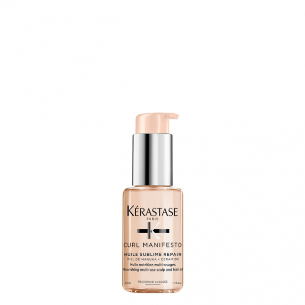 Kérastase Curl Manifesto Huile Sublime Repair tem uma fórmula versátil, que combina mel de Manuka e ceramidas, para uma ação nutritiva, hidratante, suavizante, revitalizante e desembaraçante.