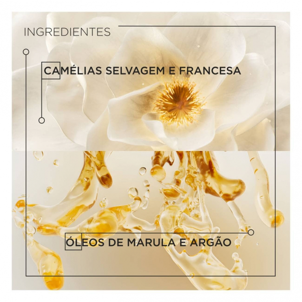 - Óleo de Camélia Francesa para nutrir profundamente e intensificar o brilho