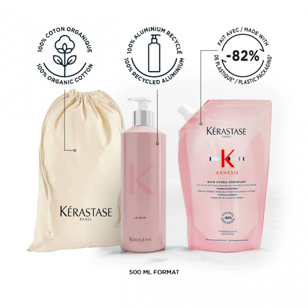 - Reabastece a Kérastase Garrafa de Alumínio Reutilizável com esta recarga