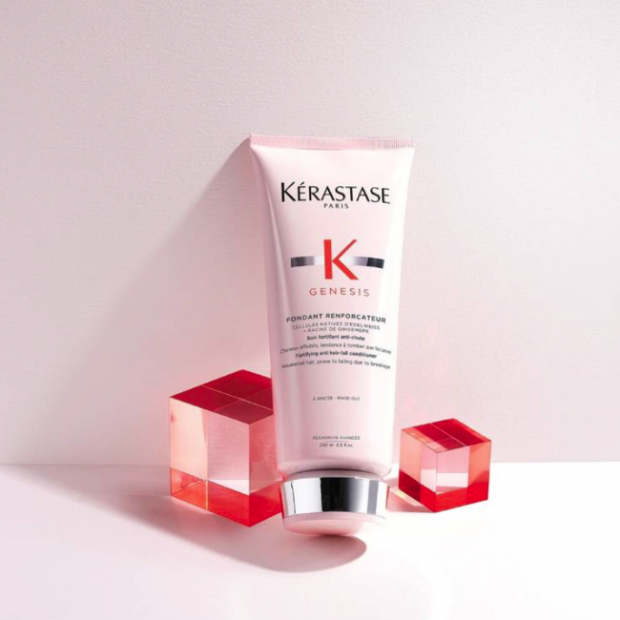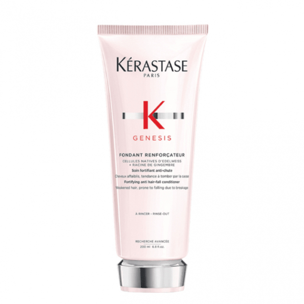 Kérastase Genesis Fondant Renforçateur Condicionador é um cuidado capilar anti-queda, com uma combinação de ativos: raiz de gengibre, células estaminais de flor de edelweiss e aminexil, para uma ação de limpeza antiqueda, protetora, antioxidante, fortificante e suavizante.