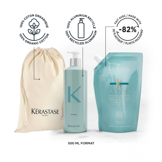 - Reabastece a Kérastase Garrafa de Alumínio Reutilizável com esta recarga