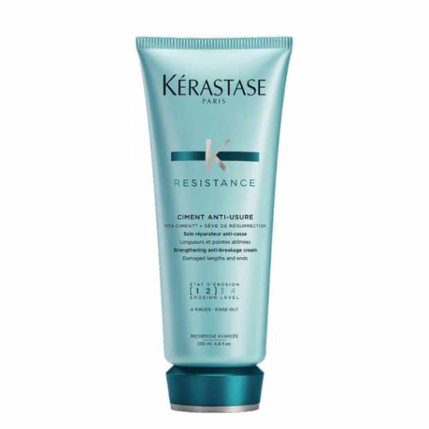 Kérastase Résistance Ciment Anti-Usure é um cuidado capilar, com uma combinação exclusiva: vita-ciment® (pro-queratina e ceramidas) e seiva da ressurreição para uma ação nutritiva, reestruturante, fortificante e regeneradora.
