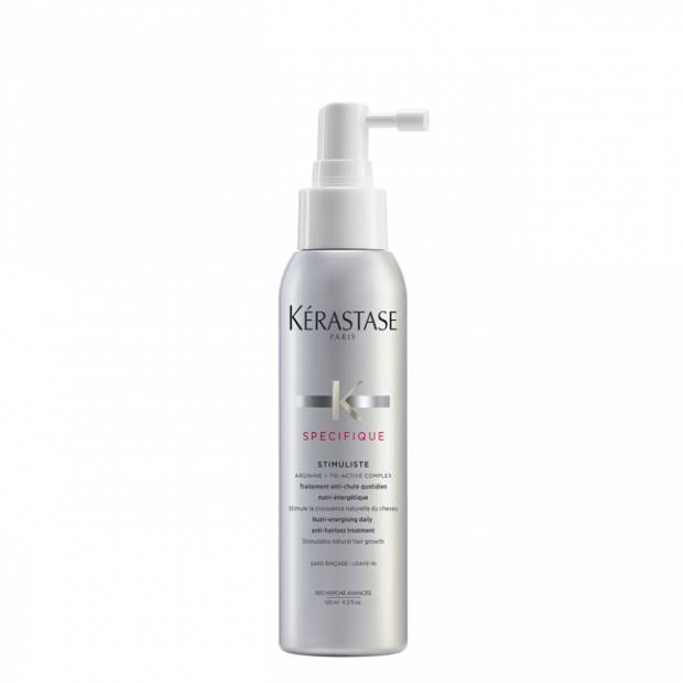 Kérastase Specifique Stimuliste Spray tem uma fórmula que combina aminexil, arginina, GL e vitamina PP, para uma ação antiqueda, fortificante, estimulante e energizante.