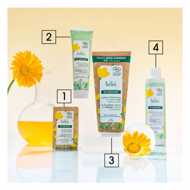 - Com extrato de calêndula orgânica, extraída de forma 100% natural, com ação suavizante