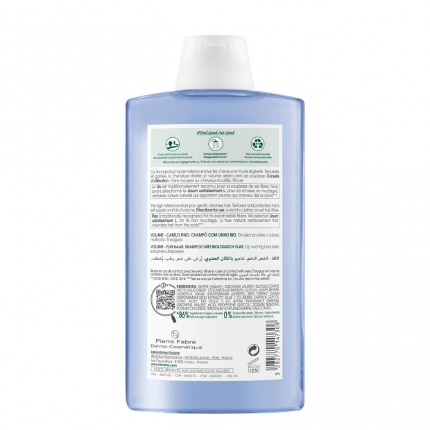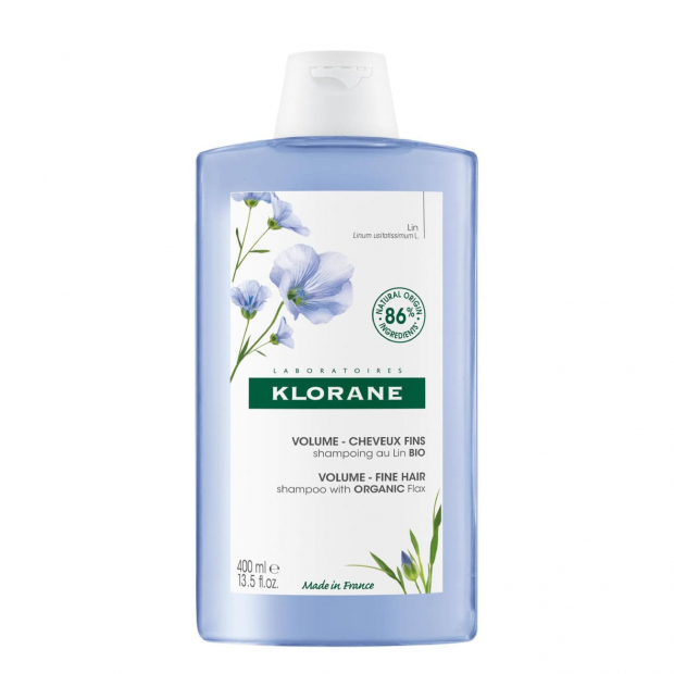 Klorane Fibras De Linho Shampoo tem uma fórmula biodegradável e um base lavante suave com: