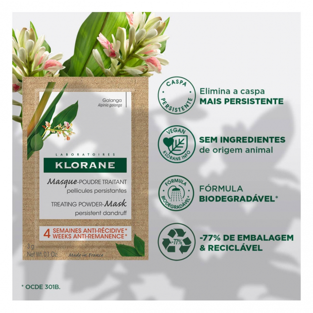 Diz adeus à caspa severa e persistente com a Máscara com Galanga da Klorane!