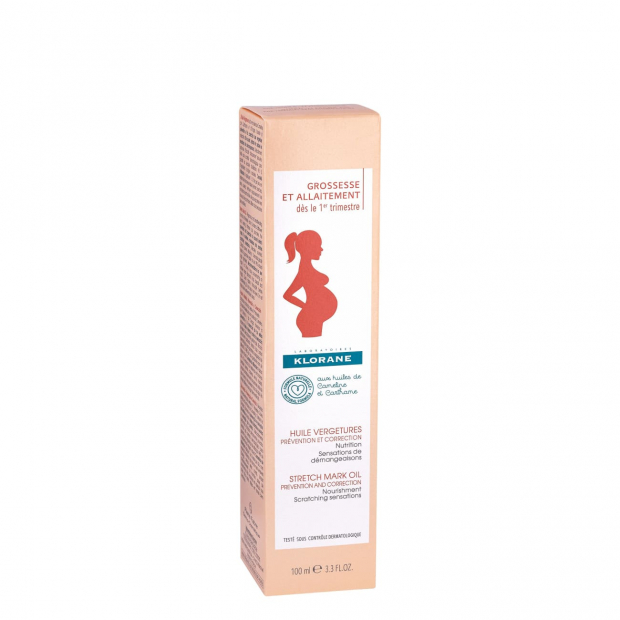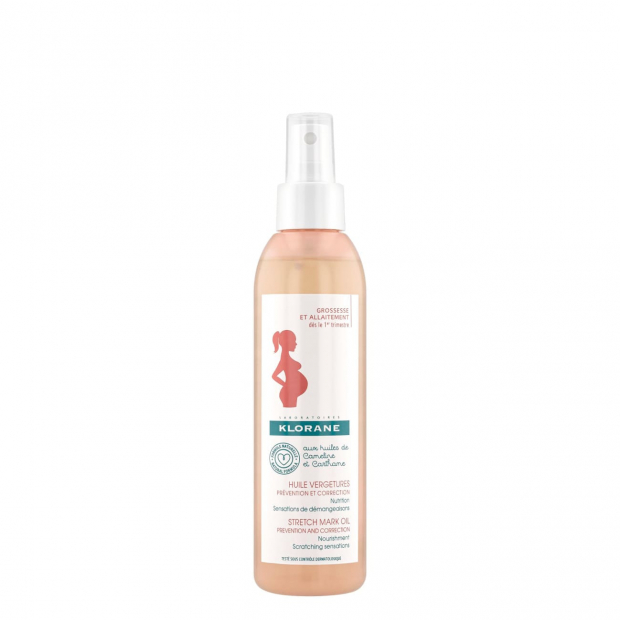 Klorane Mamã Camelina Óleo é um óleo nutritivo que ajuda a hidratar, prevenir e corrigir as estrias durante e após a gravidez.