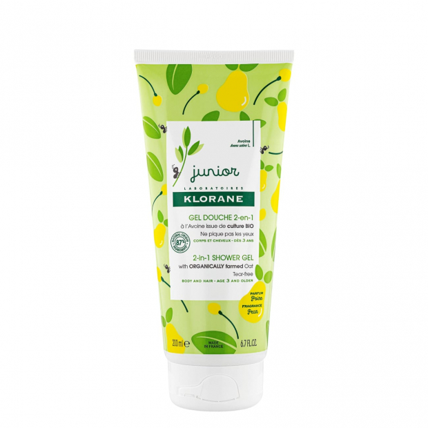 Klorane Junior Pêra Gel Duche tem uma base lavante suave, com extrato de sementes de algodão e vitamina B5, para uma ação de limpeza suave, nutritiva, protetora e fortificante.