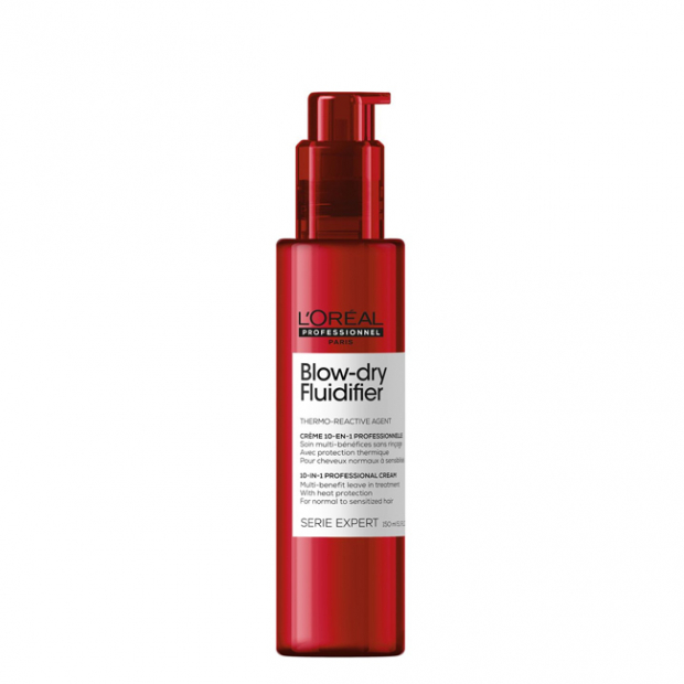 L'Oréal Expert Professionnel Blow-Dry Fluidifier é um creme que protege o cabelo contra os danos do calor, enquanto facilita a secagem.
