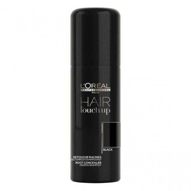 Hair Touch Up Black da L'Oréal Professionnel tem uma fórmula leve e resistente, ideal para retoques rápidos.