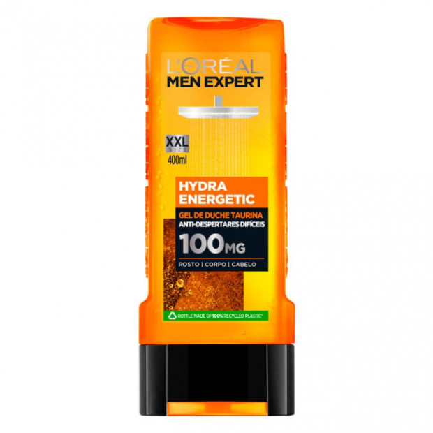 L'Oréal Men Expert Hydra Energetic Gel Duche tem uma base lavante fresca, com taurina (100mg), para uma ação de limpeza revitalizante, estimulante, suavizante e refrescante.