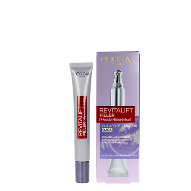 L'Oreal Paris Revitalift Filler Olhos tem uma textura em creme com uma elevada concentração de ácido hialurónico para uma ação anti-rugas e volumizadora.