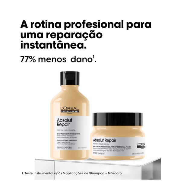 - L’Oréal Expert Professionnel Absolut Repair Shampoo que lava e repara de imediato, enquanto nutre e fortalece o cabelo, sem pesar