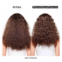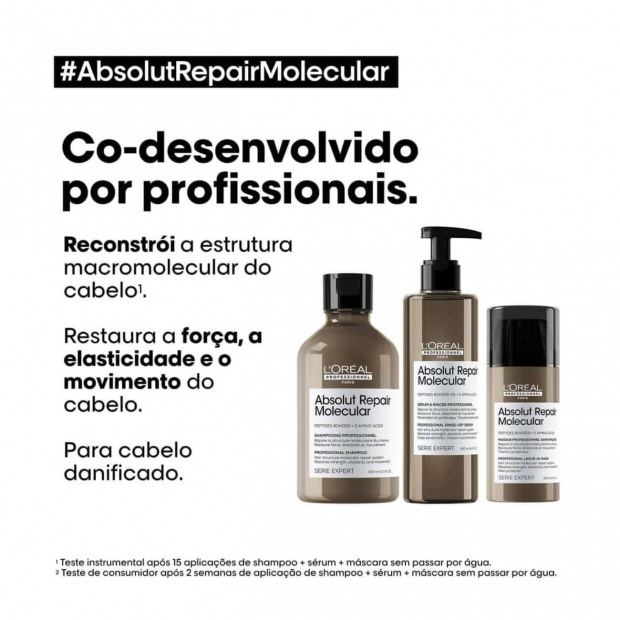 De seguida, aplica o shampoo Absolut Repair Molecular, passa por água e aplica o sérum.