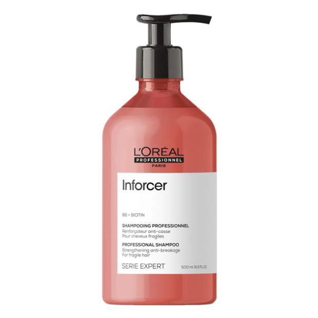L'Oréal Expert Professionnel Inforcer Shampoo tem uma fórmula que combina uma base lavante com vitaminas do complexo B: B6 e B7 (biotina), para uma ação de limpeza fortificante, protetora, iluminadora, desembaraçante e suavizante.