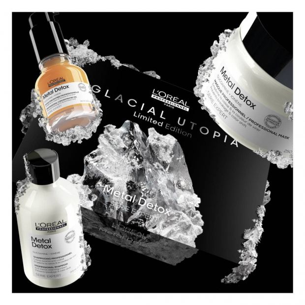 L'Oréal Professionnel Coffret Glacial Utopia Trio Metal Detox contém: