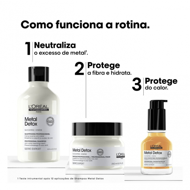 - L'Oréal Expert Professionnel Metal Detox Shampoo que limpa suavemente o cabelo e elimina todas as partículas metálicas e poluentes