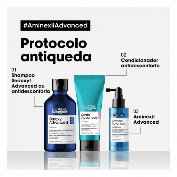 Como Shampoo, aplica L’Oréal Professionnel Scalp Advanced Máscara no cabelo molhado, massaja e remove com água. Como máscara, aplica no couro cabeludo, deixa atuar durante 3 a 5 minutos e remove.