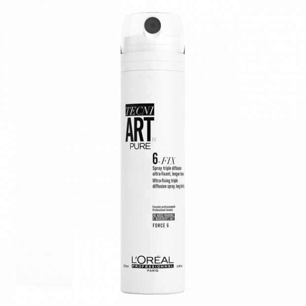 L’Oréal Professionnel Tecni Art 6-Fix Spray tem uma fórmula de tripla difusão, que combina agentes fixadores, para um penteado perfeito.