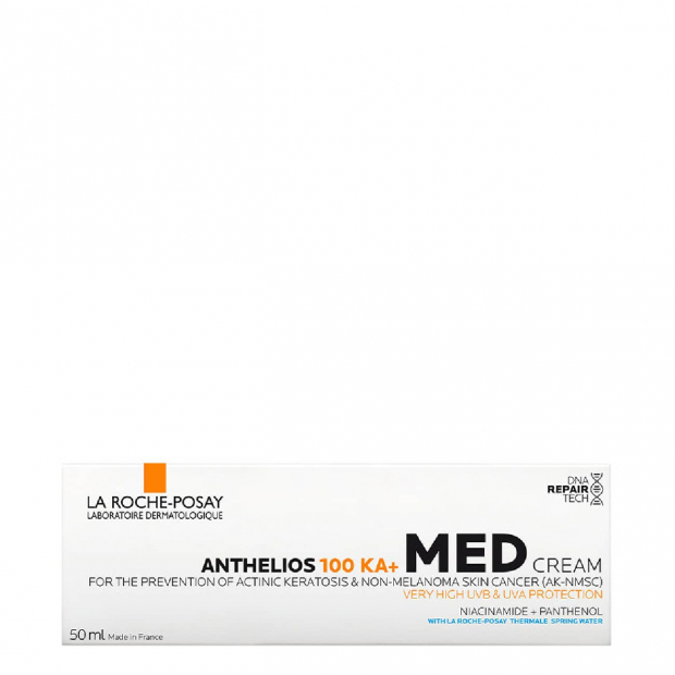 La Roche Posay Anthelios 100 Creme KA+ MED tem uma tecnologia única com um sistema patenteado Cellular-Shield que combina filtros UV de largo espetro e antioxidantes, numa textura fluida, que não deixa marcas brancas.