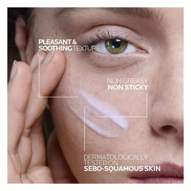 Aplica uma quantidade do tamanho de uma avelã de La Roche Posay Kerium DS Creme de manhã e à noite no rosto previamente limpo.